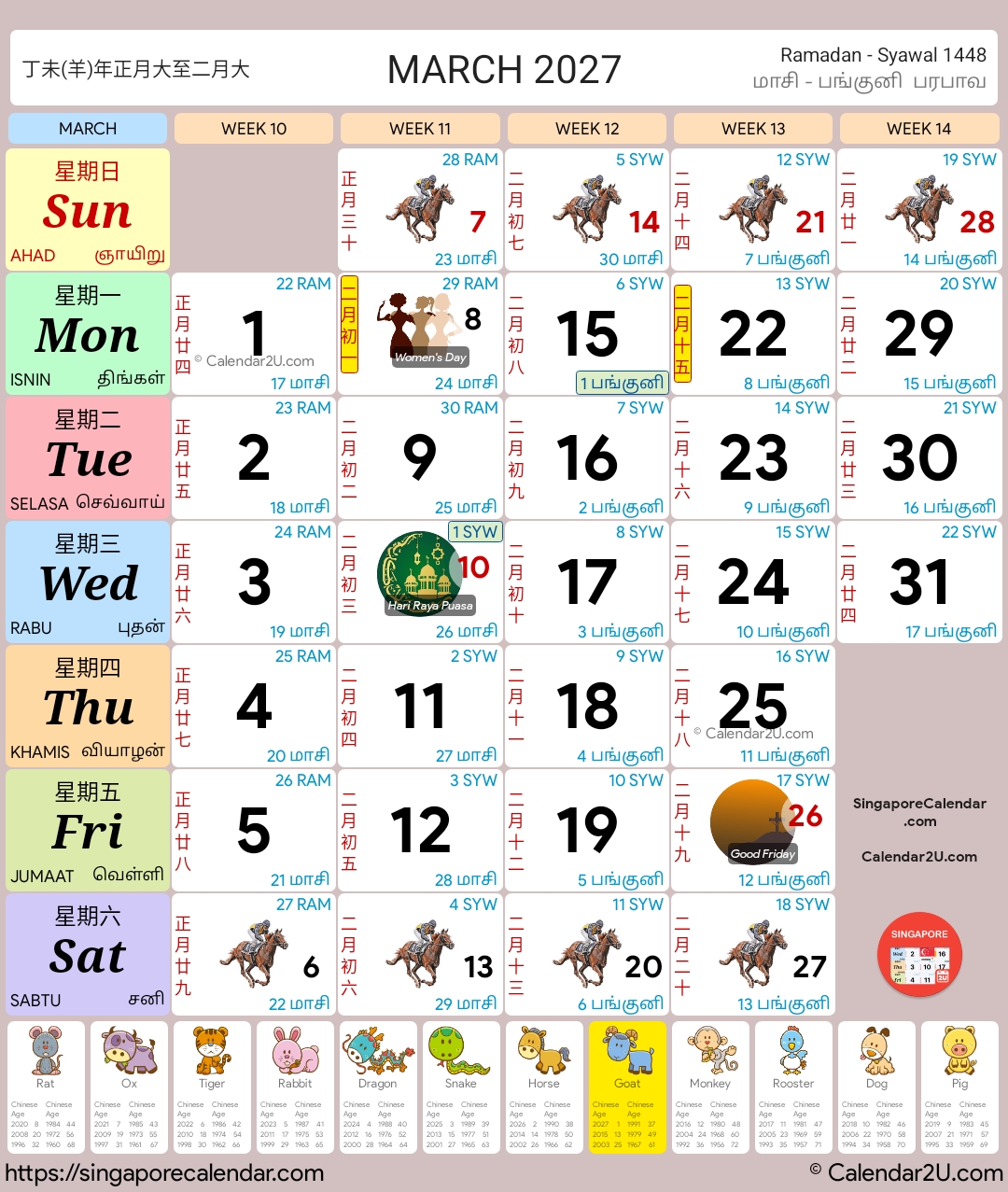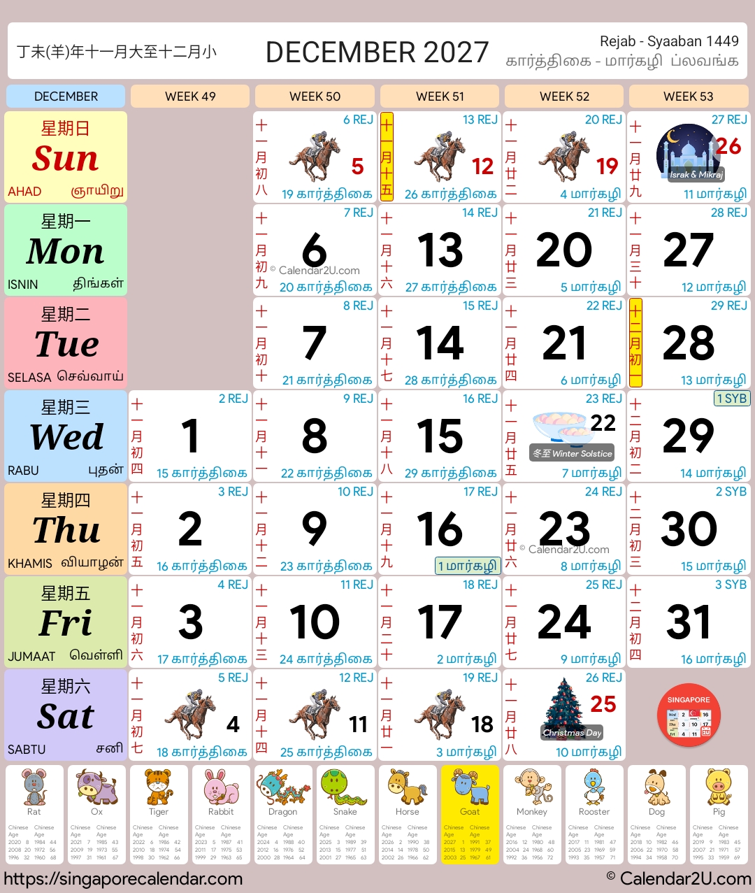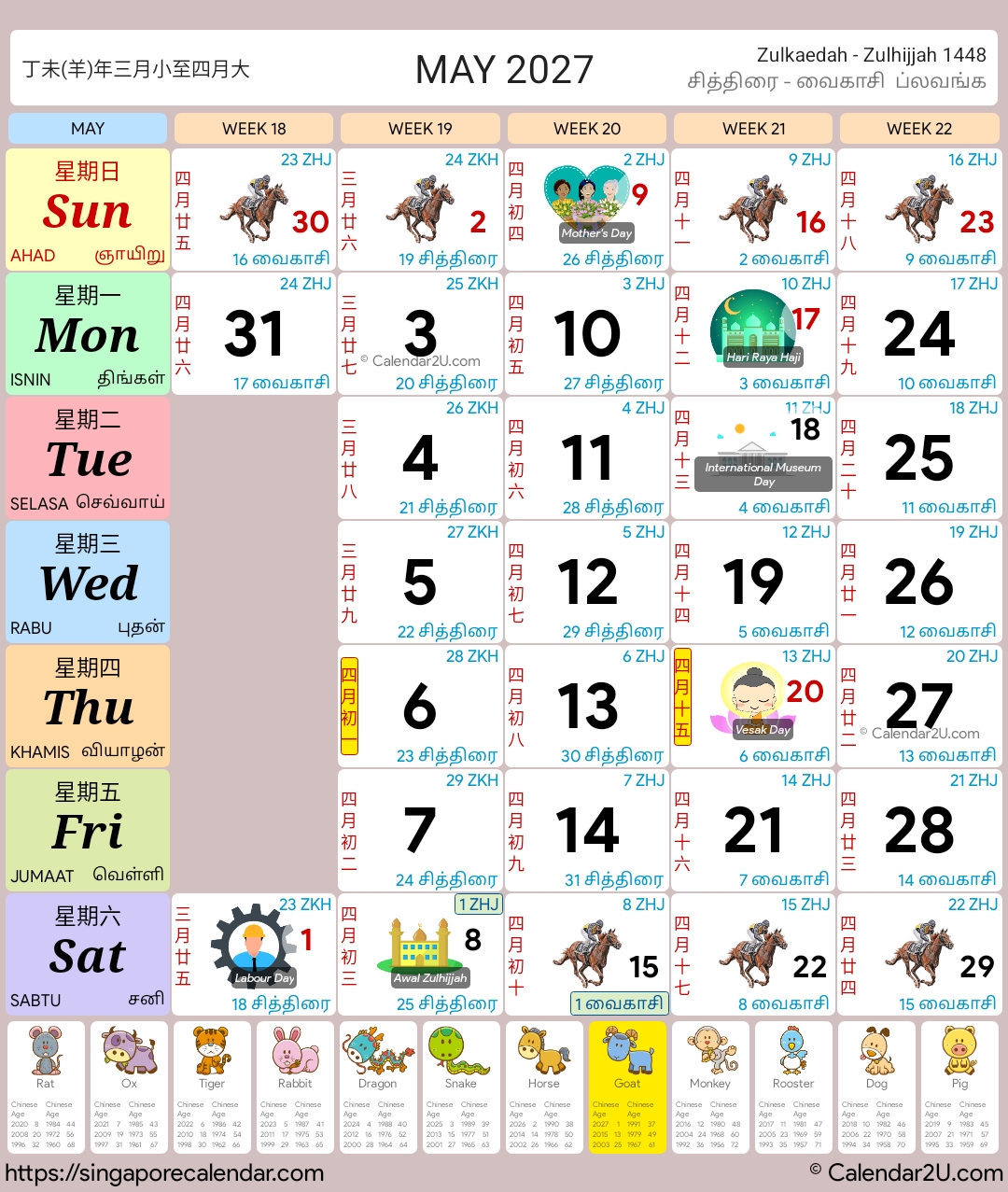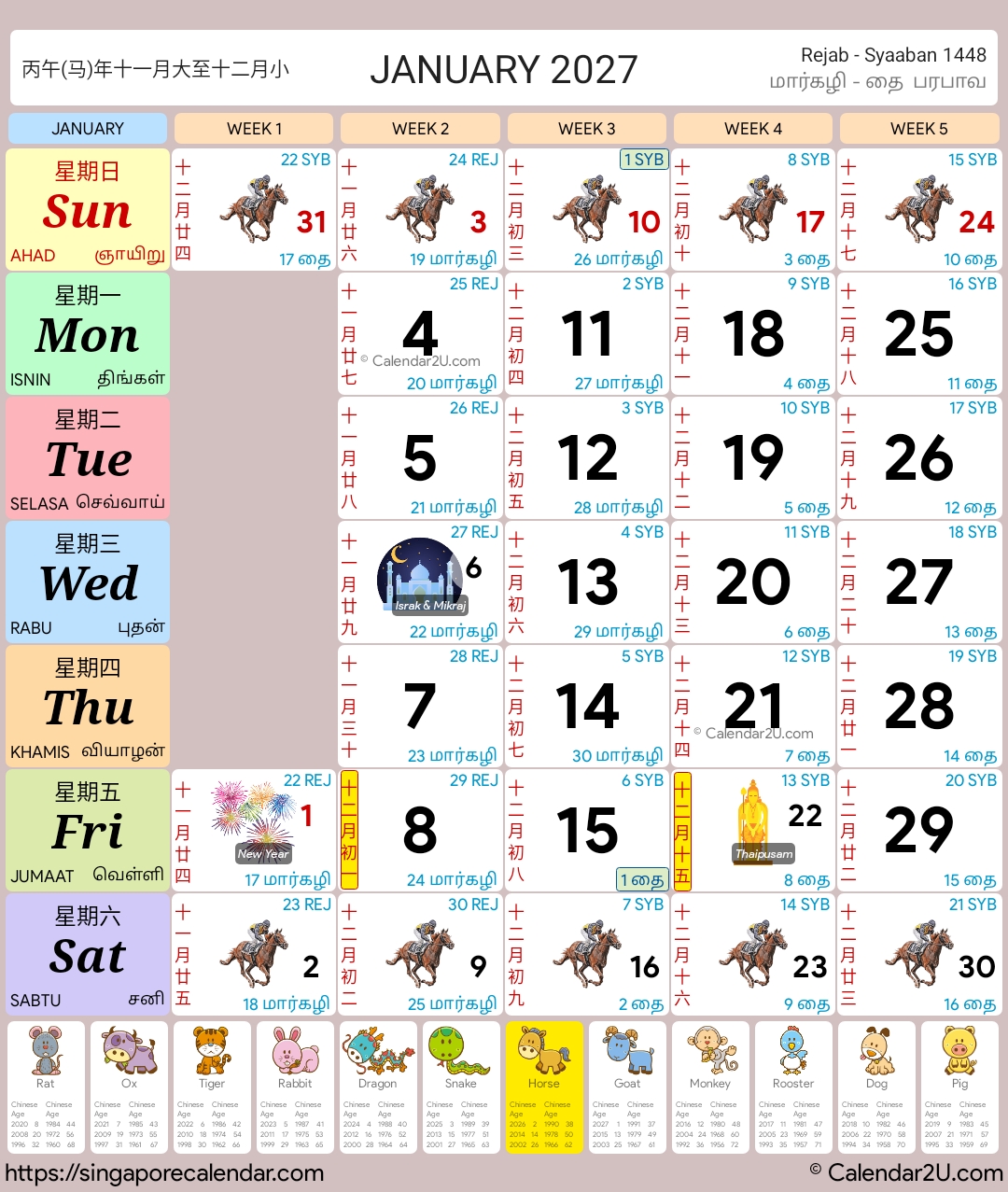 Singapore Calendar Year 2026 – Traditional Horse Design
