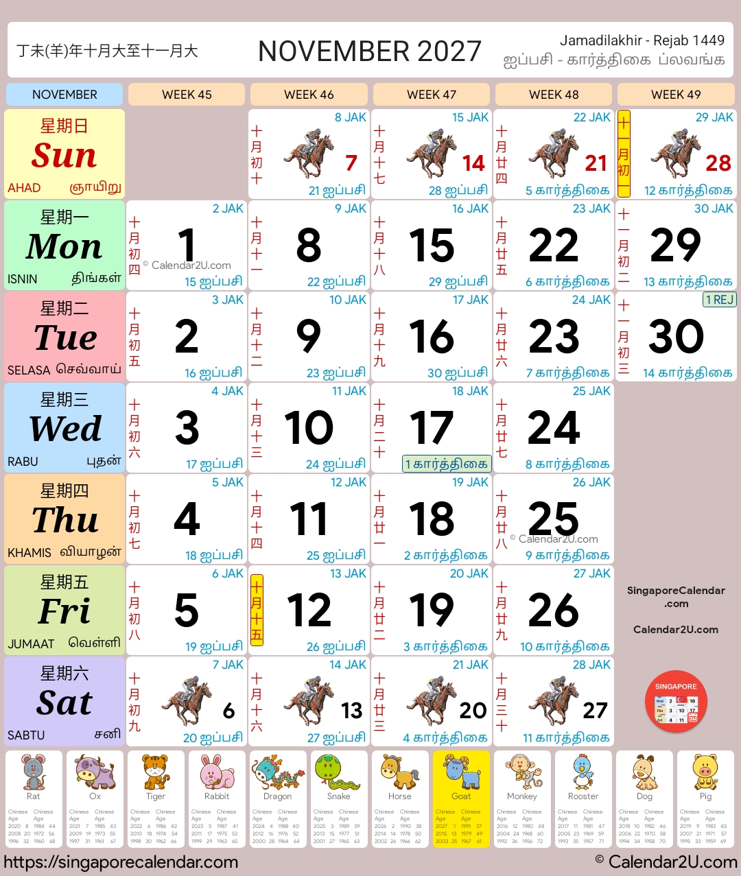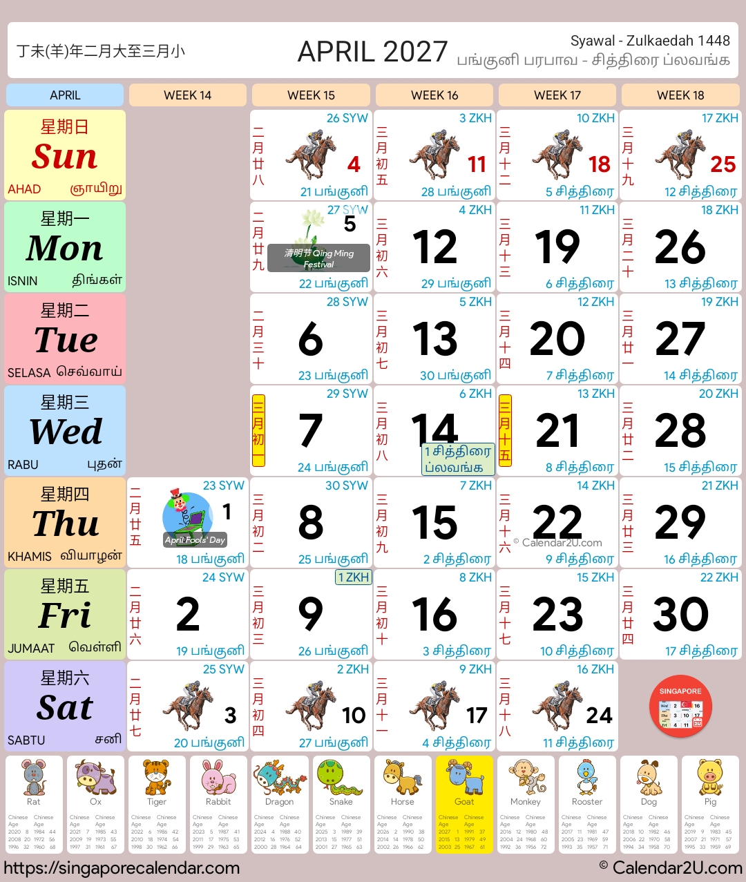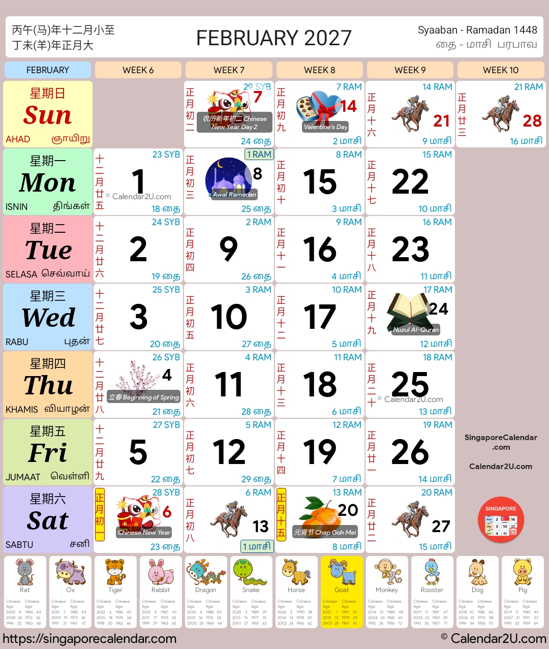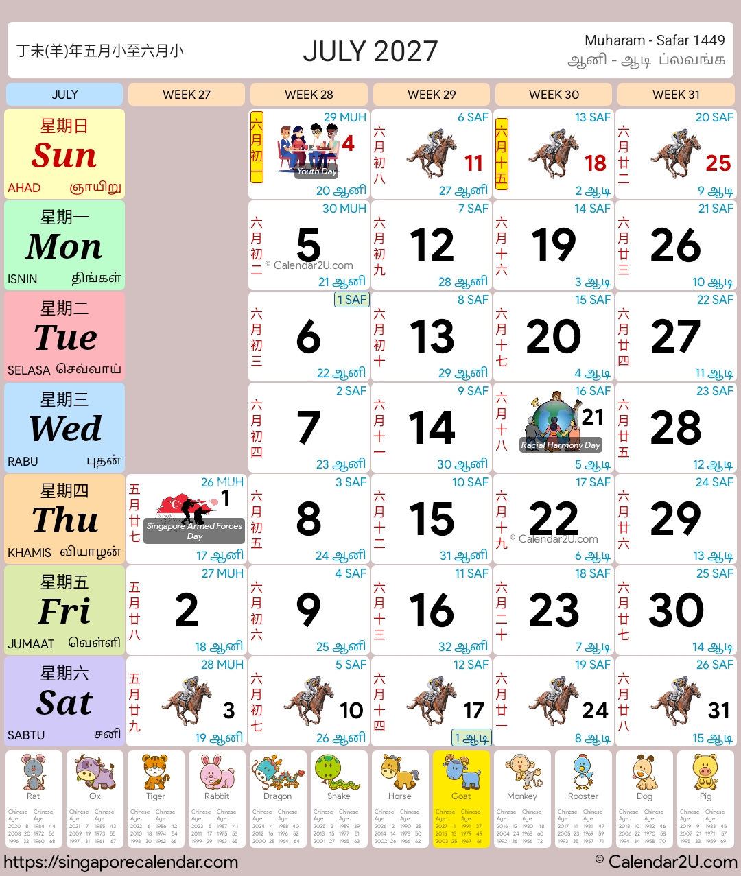 Singapore Calendar Year 2026 – Traditional Horse Design